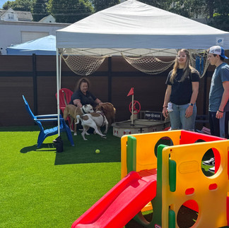 The Yard:Outside, our brand new K9 turf transformed the space into a dog’s dream. Yes, it gives off a slightly odd scent in the heat, but trust us—it’s a major upgrade from the old pea stone. The yard was equipped with splash pads, open pools, a misting station, and plenty of shaded seating for the humans. Dogs had access to a variety of toys and climbing structures to keep them engaged and entertained.